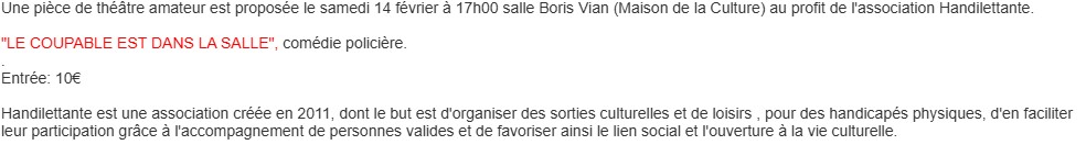 Tableau des animations du « Territoire OUEST » (ce tableau est appelé à être complété et enrichi au fil des programmations connues) :